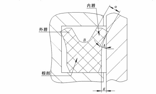 內唇和活塞外唇和缸體夾角的大小直接意義著密封唇嘴和其相應接觸面的接觸面積的大小。夾角越大,密封唇嘴和其相應接觸面的接觸面積越小,這給低壓密封效果意義不大,但給較高壓密封效果要有意義。當夾角較小時,密封唇嘴和其運動接觸面的接觸面積較大,隨著工作壓力的增加,密封唇嘴因擴展而出現的偏盈力增加,有利于密封,但要增加摩擦力,接觸面磨損加劇,影響密封圈產品的使用壽命。有符合工作壓力的要求下,選擇適合的角度值,會得到好的密封效果,并會有效果延長密封件結構的壽命狀況。