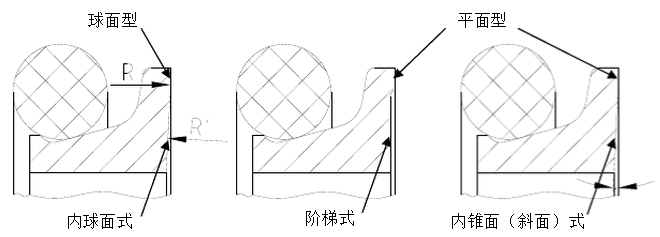 浮動密封環(huán)密封面的設計分為平面型和球面型。平面型較為通用。球面型分為單球面和雙球面兩種。球面型密封面特點是接觸時可確保形成閉合的圓形密封線。實際在軸向力的作用下,浮動密封環(huán)發(fā)生輕微形變,接觸區(qū)域形成很窄的環(huán)面,密封可靠性高,散熱性能好。并隨磨損程度的加大,浮封環(huán)繼續(xù)變形,使接觸面不斷向內(nèi)側偏移,直到抵達密封面內(nèi)徑,延長了浮封環(huán)的使用壽命。浮封環(huán)從密封面到內(nèi)徑的區(qū)域一般采用階梯式、內(nèi)錐面(斜面)或內(nèi)球面式設計。內(nèi)錐面(斜面)或內(nèi)球面式設計的好處是使?jié)櫥屯ㄟ^離心力和毛細作用,進入密封面,保證密封面的充分潤滑和冷卻。對于整體硬化的浮封環(huán),理論上接觸密封面可以一直向內(nèi)偏移浮封環(huán)內(nèi)徑處。