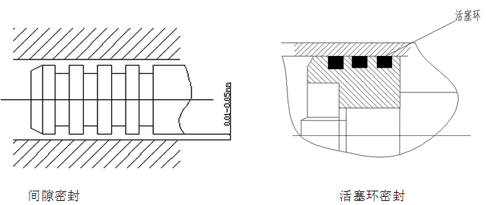 間隙密封是一種常用的密封方法,它依靠相對運動零件配合面間的微小間隙來防止泄露。一般間隙為0.01-0.05mm。間隙密封在活塞的外圓表面一般還開幾道寬0.3-0.5mm、深0.5-1mm、間距2-5mm環形溝槽,也稱平衡槽。主要作用是減少徑向卡緊力和自潤滑功能。間隙密封簡單,不用任何密封件,摩擦力小,但對零件加工精度要求高,不能完全阻止泄漏,且密封性不能隨壓力升高而提高,只適用于直徑較小,壓力較低,速度較快,密封性能不是很高的環境,如換向閥、液壓泵(柱塞泵)、液壓馬達、小直徑快速缸等。