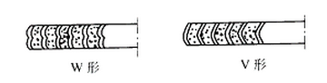 纏繞墊密封墊片有四種類型,見圖2。圖2(a)為基本型;圖2(b)為帶內環的;圖2(c)為帶外環的;圖2(d)為帶內、外環的。鋼帶剖面形狀也有兩種:W形和V形。W形鋼帶回彈性能優于V形,但加工困難,故國內目前絕大部分使用V形。其剖面圖見3。