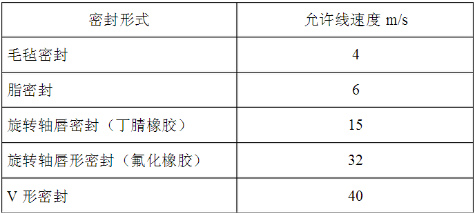 接觸式密封圈產品的允許速度因滑動表面粗糙度、精度、潤滑、使用溫度等不同而不同,參考值如下表所示: