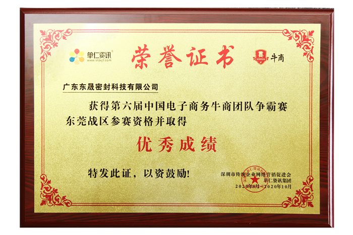 恭喜東晟密封榮獲第六屆東莞牛商爭霸“流量王”殊榮